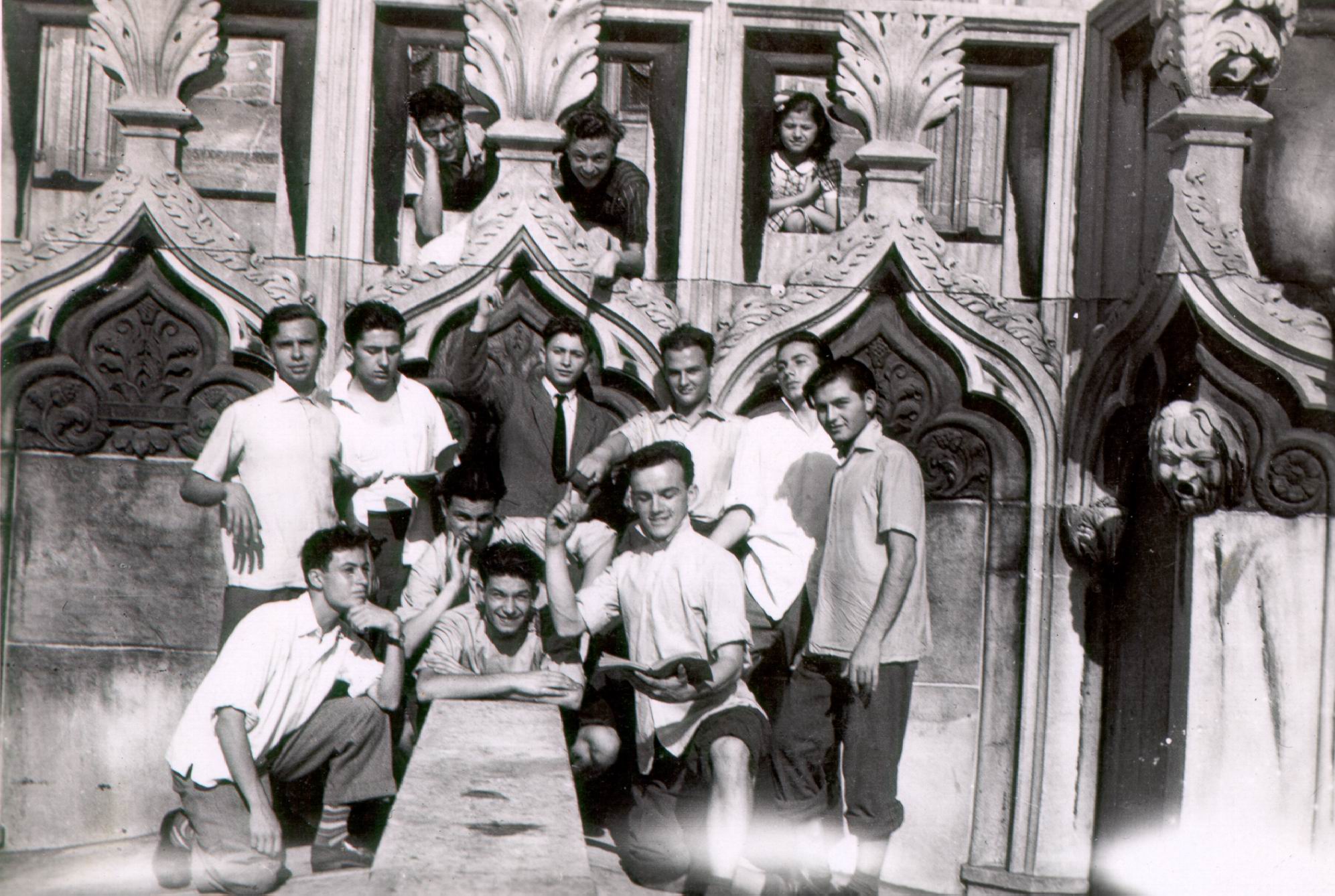 Gerzeli (nella parte di Aristotele) con alcuni compagni di classe del Liceo Scientifico Vittorio Veneto di Milano